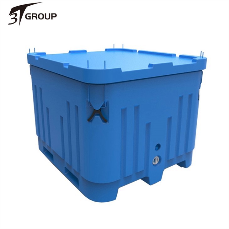 HDPE Polar Blue Kanta s odvodnom cijevi. Izrađen je od polietilenske strukture i ima poliuretansku izolaciju. Kutija za toplinsku izolaciju sprječava prerano topljenje leda i čuva ribu ili drugi sadržaj u najboljoj svježini. To je izvrsna kutija za ribu, ali također je prikladna za skladištenje ili transport smrznutih proizvoda i F/V tradicionalne ribe, ocean za slobodno vrijeme, lov za slobodno vrijeme i distribuciju hrane. Kutija usvaja tehnologiju zidne brave za spajanje unutarnjih i vanjskih stijenki kutije za ribu kako bi se spriječilo raslojavanje, kako bi se dobile bolje performanse i izdržljiviji proizvodi, koji mogu biti kompatibilni s viličarima i tankim dizalicama za palete.